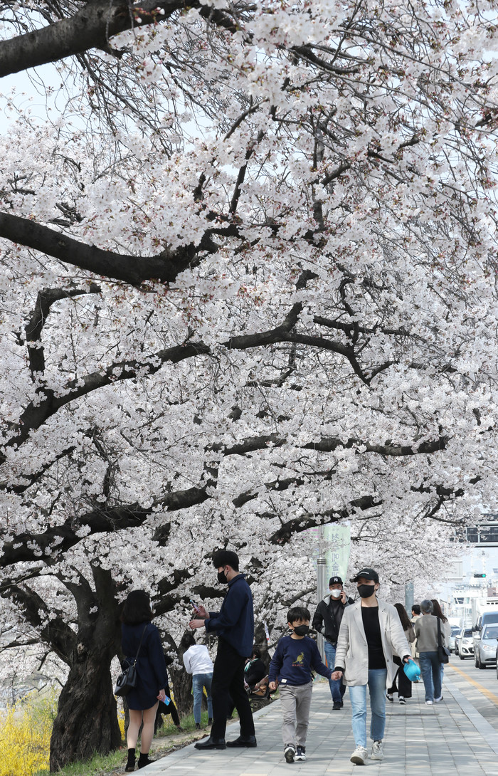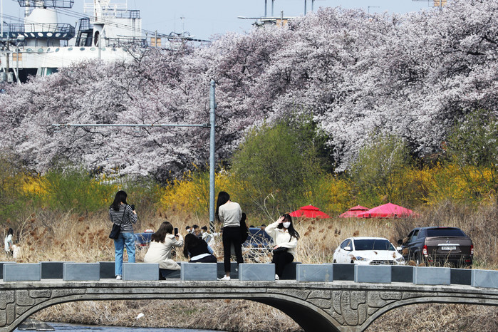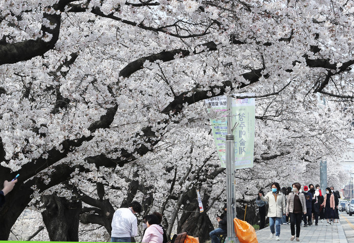 [충북=세계타임즈 이현진 기자] 5일 무심천 일원에서 도민들이 만개한 벚꽃을 즐기며 봄기운을 만끽하고 있다./ 사진 충북도의회 제공
