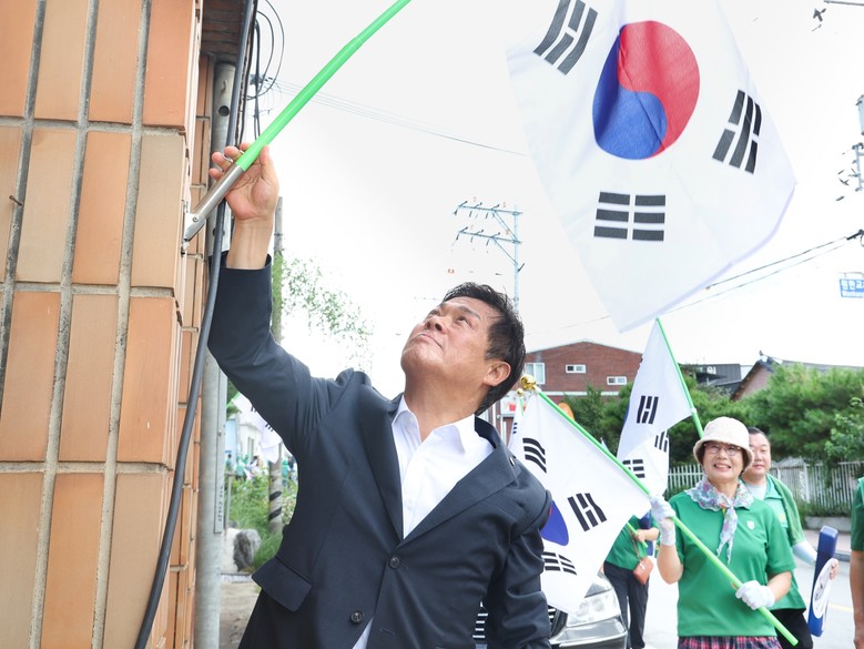 14일 북면 원화해마을과 원한교마을에서 열린 이번 캠페인은 국기 게양의 의미를 되새기고 애국심을 널리 확산시키기 위해 마련됐다. 행사에는 이학수 시장과 새마을회 회원 50여 명이 함께하며 광복의 뜻을 공유했다.