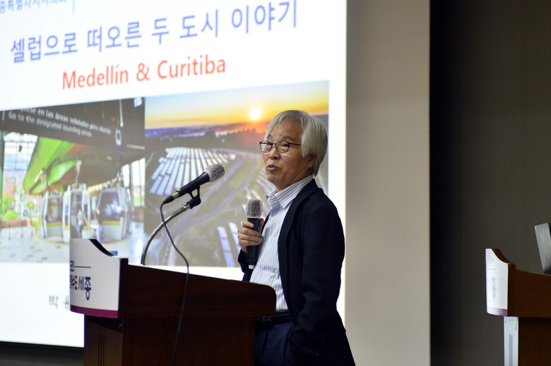 이날 강연은 세종시의회 의원 및 사무처 직원뿐 아니라 세종시청 및 교육청 직원을 대상으로 세계적인 도시로 주목받고 있는 ‘콜롬비아 메데진(메데인)’과 ‘브라질 꾸리찌바(쿠리치바)’의 성공 사례를 교육하기 위해 마련됐다.