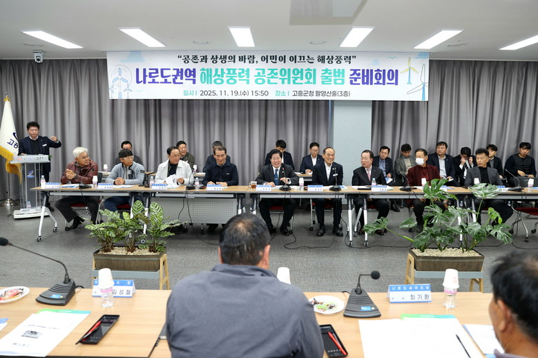 연내 ‘공공주도 해상풍력 대군민 상생·공존 대회’ 추진 기대 [세계타임즈=고흥군 우덕현 기자] 고흥군(군수 공영민)이 지난 19일 나로도수협 권역 해상풍력 공존위원회 출범 준비 회의를 열고 공공주도 해상풍력 개발을 본격화했다.