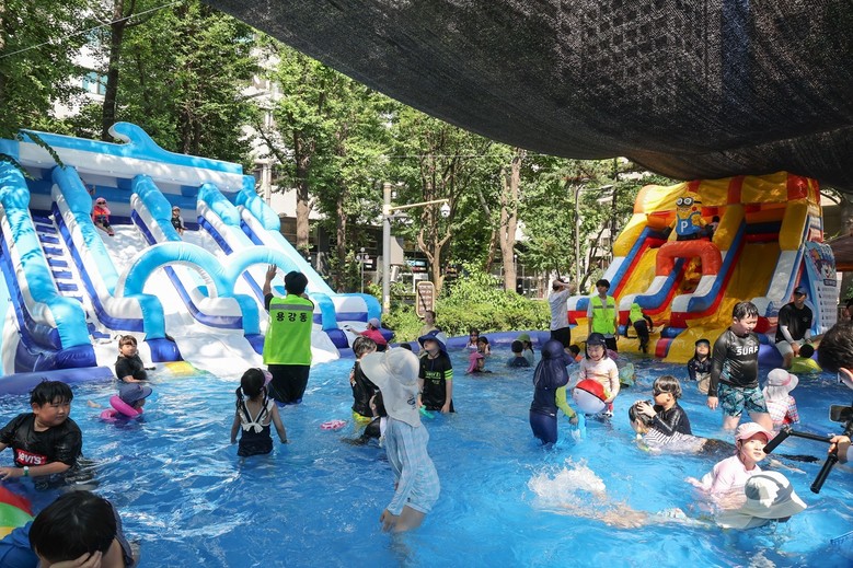 에어수영장과 워터슬라이드 등 놀이시설을 갖추고 안전요원을 상시 배치해 접근성과 안전성을 모두 고려하고 가까운 동네에서 가족이 함께 안심하고 여름 추억을 만들 수 있도록 했다.