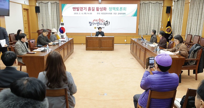 [대전 세계타임즈=이채봉 기자] 대전시의회 교육위원회는 김진오 의원(국민의힘, 서구1) 주재로 6일 의회 소통실에서 ‘맨발걷기 흙길 활성화를 위한 정책간담회’를 개최했다.