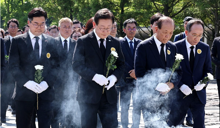 노무현 전 대통령 묘역 참배하는 여야 지도부