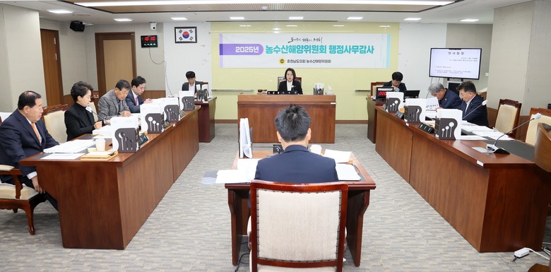 [충남 세계타임즈=이현진 기자] 충남도의회 농수산해양위원회(위원장 이연희)는 17일 충청남도 농축산국(농업정책과‧스마트농업과‧농식품유통과‧농촌재구화과)과 스마트농업본부를 대상으로 2025년도 행정사무감사를 실시했다. 이날 농수해위는 충남 농업의 지속가능성 제고와 농업‧농촌 현안 대응을 위한 제도 개선 사항을 점검했다.