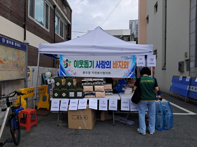 [중구 세계타임즈=이채봉 기자] 대전 중구 용두동 자원봉사협의회(회장 최순자)는 지난 16일 용두동 행정복지센터 앞에서 ‘이웃돕기 사랑의 바자회’를 개최했다.