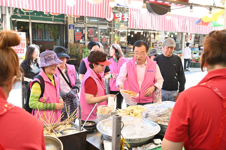 이날 이현재 시장은 상인들과 인사를 나누며 제철 과일과 나물, 한과 등을 직접 고르고 장바구니에 담았다. 시장 곳곳을 걸으며 상인들의 어려움을 묻고, “명절 대목이 활기를 되찾을 수 있도록 시민들의 발걸음이 이어지길 바란다”며 따뜻한 격려도 건넸다.