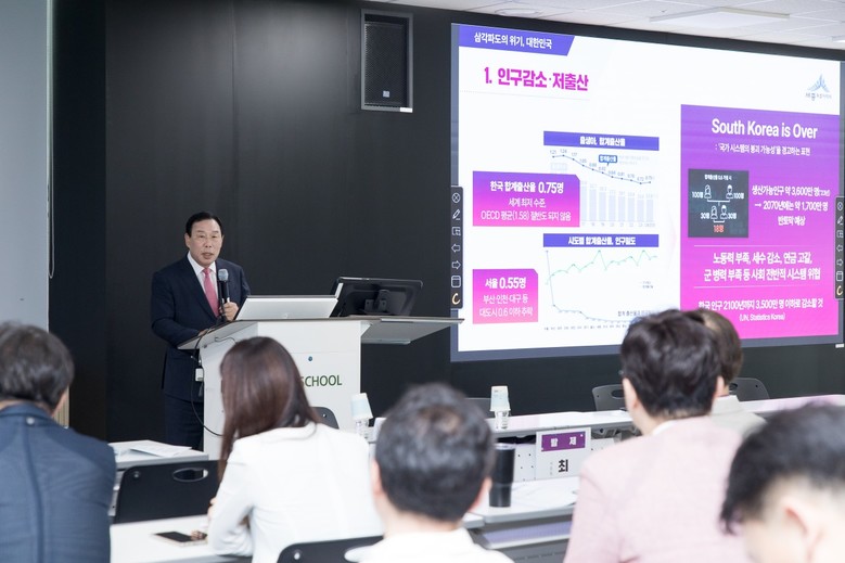이어 우리나라가 처한 저출생, 지역소멸, 양극화 등 삼각파도 위기를 극복하기 위한 해법으로 행정수도 완성, 수도권 명문대 이전, 대기업 유치, 중부권 메가싱크탱크 조성 등 단계적 전략을 제시했다.