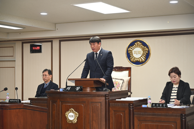 오은규 의장은 “바쁘신 와중에도 의원님들의 활발한 의정활동에 감사드리며, 집행기관 공무원 여러분의 노고에도 감사의 말씀을 드린다”고 말했다.