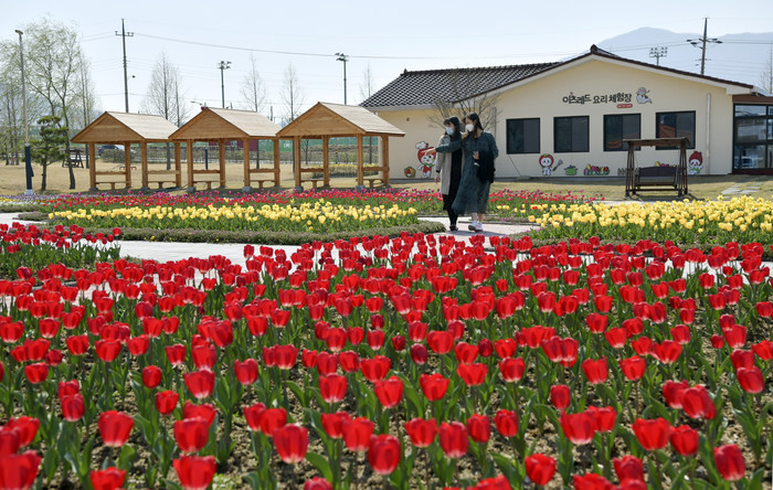 [장수=세계타임즈 임하영 기자] 전북 장수군 누리파크에 튤립이 만개해 사람들의 눈길을 끌고 있다.