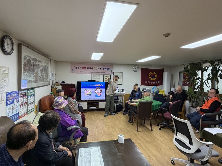 이날 프로그램에는 경로당 이용 어르신들이 참여했다. 참여자들은 사전 검사를 통해 자신의 정서 상태를 확인하고, 우울 예방 교육과 활동 프로그램에 참여하며 마음건강 관리 방법을 익혔다.