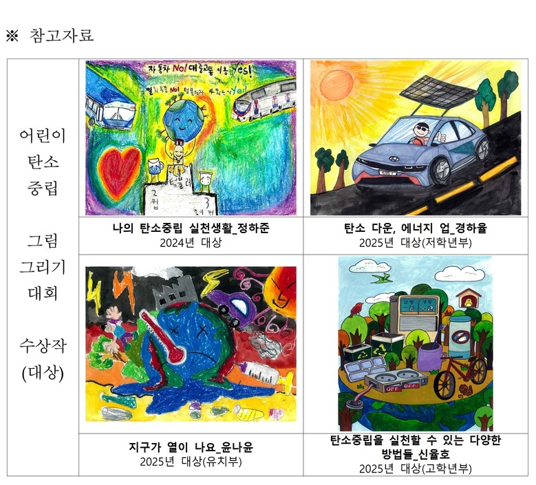 정승환 시 환경국장은 “어린이와 청년이 표현한 탄소중립의 가치가 시민 여러분의 인식 변화를 이끄는 소중한 길잡이가 됐다”며, “기후위기 시대에 모두가 함께하는 생활 속 탄소중립 실천문화를 지속적으로 확산해 나가겠다”라고 말했다.