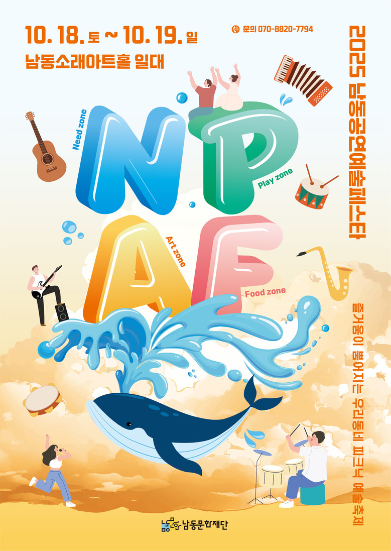 ‘2025 NPAF : 남동공연예술페스타’는 10월 18일(토), 19(일) 이틀 동안 오전 11시부터 저녁 9시까지 남동소래아트홀 일대에서 개최되며 모든 공연과 원데이클래스가 무료로 진행된다.