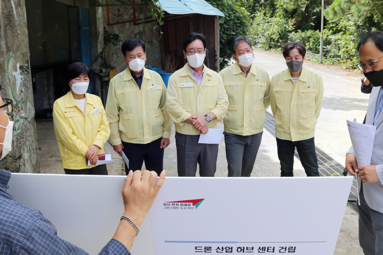 ▲ DaaS(Drone as a Service)기반 글로벌 오션시티 실증 사업을 바탕으로 해외 시장 개척과 민간시장 창출 지원 허브 센터 구축을 위해 추진되는 드론산업 허브센터 건립현장(사하구 하단동), ▲新연료 선박 기술 개발 사업 연구를 위한 친환경 수소연료선박 R&D플랫폼 구축 현장(남구 우암동), ▲부산추모공원 봉안시설 만장 대비를 위한 부산추모공원 봉안당 증축 현장(기장군 정관읍), ▲북부소방서 청사 노후화 심각에 따른 북부소방서 재건축 현장(사상구 삼락동)을 둘러보고 현장 진행 상황을 점검했다.