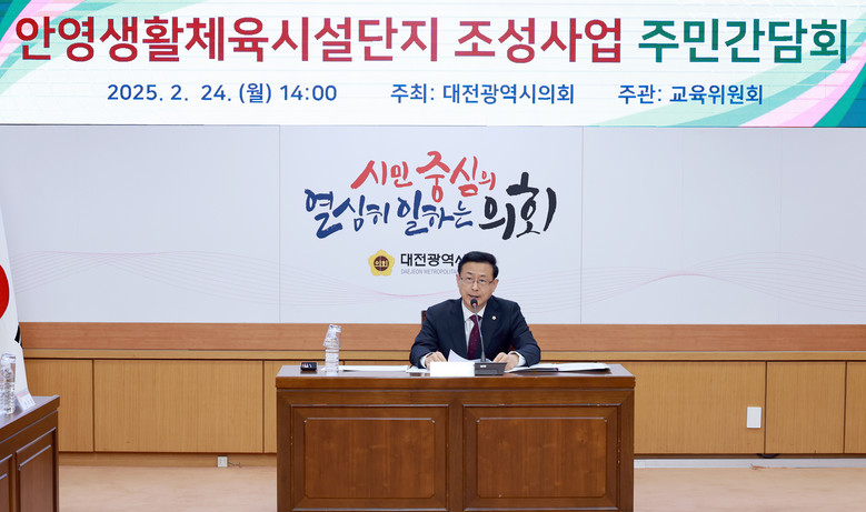 [대전 세계타임즈=이채봉 기자] 대전시의회 교육위원회 민경배 의원(국민의힘, 중구3)은 24일 시의회 소통실에서 안영생활체육시설단지 2단계 조성 사업과 관련 주민간담회를 개최했다.