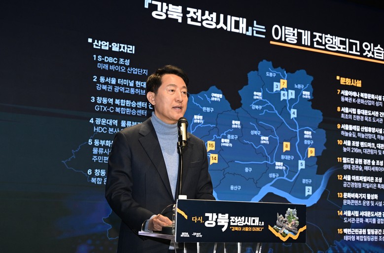 이어 “강북이 도약하면 서울의 성장 기반은 더욱 탄탄해지고 서울의 경쟁력이 높아질수록 대한민국의 미래 또한 한층 더 넓어진다”고 밝히며 “앞으로 16조 원의 재원을 강북에 집중투자해 강북을 더 이상 베드타운이 아닌, 대한민국의 다음 성장을 이끄는 핵심 축으로 키워가겠다고 강조했다.