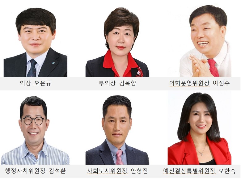의회운영위원장은 이정수 의원, 행정자치위원장은 김석환 의원, 사회도시위원장은 안형진 의원, 예산결산특별위원장은 오한숙 의원이 선출됐다.