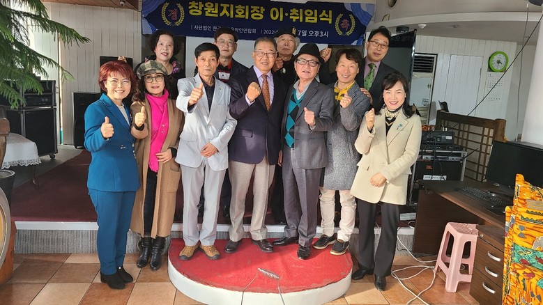 [세계타임즈] 최성룡 기자 = (사)‘한국 대중음악인 연합회’ 작곡가(회장 신상호) 전국 40여 개의 지회가 활발하게 활동하고 있는 가운데 11월 27일(일) 오후 3시 마산 창동에 위치한 창원 서부지회 사무실에서 신상호 회장. 김용섭 사무총장 , 김상겸 총재 등 임원들과 가수 강유주.송일송 김수경.경기민요 김금자 회원들이 참석한 가운데 지회장 이, 취임식을 가졌다.