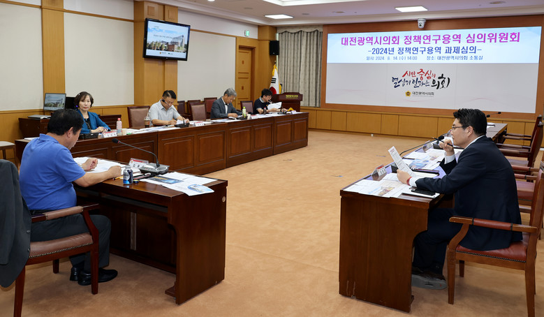 [대전 세계타임즈=이채봉 기자] 대전시의회 의원연구회는 14일 의회 소통실에서 올해 대전시의회 의원연구회가 발주 예정인 정책연구용역 과제에 대한 사전 심의회를 개최했다.