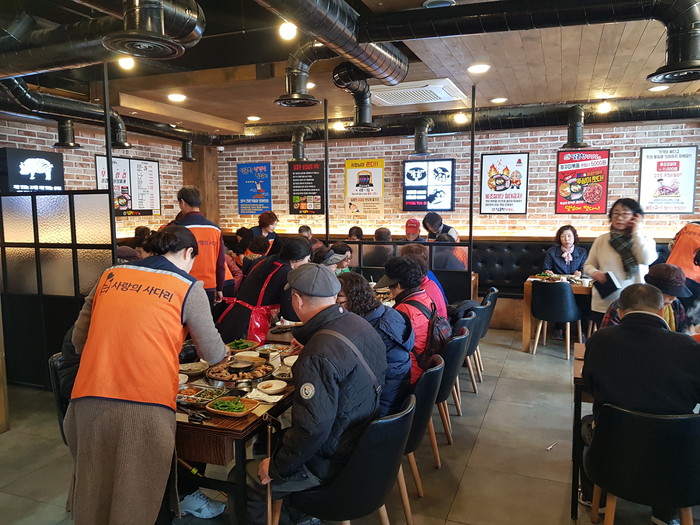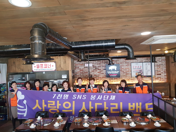 [세계타임즈 이장성 기자] 다양한 봉사를 꾸준히 하고 있는 대전시 SNS 봉사단체 사다리 밴드(리더 이정제)는 22일 오전11시, 달콤한 삼겹살 상대점에서 유성구 시각장애인협회(회장 김태용)의 50명 회원들의 점심시간에 삼겹살 봉사로 우리 사회의 따뜻한 사랑을 전달하였다.