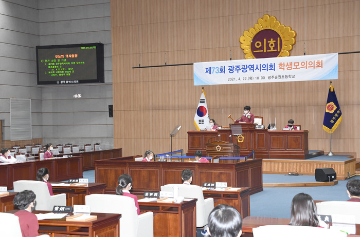 광주광역시의회는 학생 모의의회를 2005년부터 광주광역시교육청에서 학교를 추천받아 진행 중으로 지금까지 총 73회 8,000여명이 체험했고 11월 중에는 체험 우수 수기에 대해 시상할 예정이다.