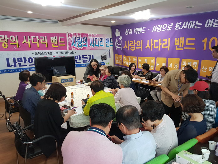 6천명 SNS 밴드 회원들이 활동하고 있는 사단법인 사랑의 사다리 밴드는 회원들의 자발적인 후원과 참여로 다양한 봉사활동을 꾸준하게 하면서 우리 사회에 따뜻한 나눔을 실천하고 있으며, “나만의 미니다큐 만들기”교육은 매주 월요일 오전10시에 하고 있다.