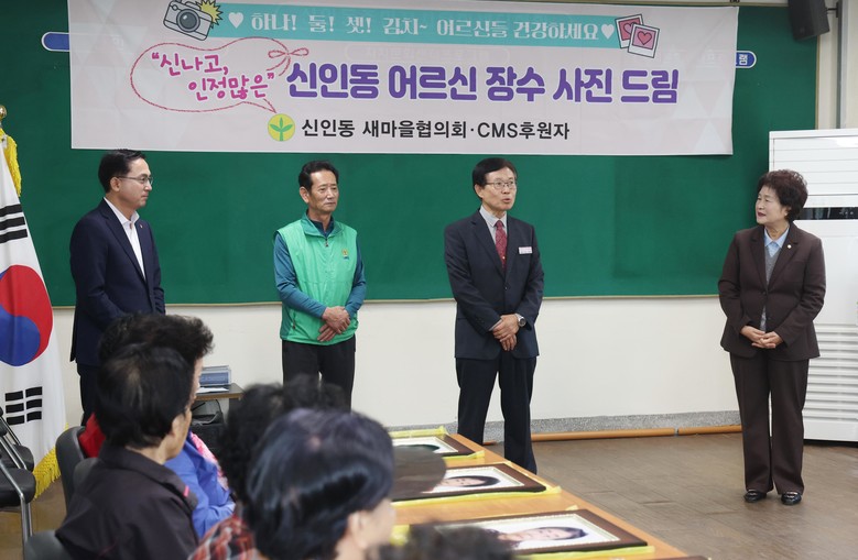 이어, 신인동 새마을협의회가 주관한 취약계층 어르신 대상 ‘장수사진 증정식’에 참여해 주민 의견을 청취하고, 노인복지 정책에 대한 제언의 시간을 가졌다.