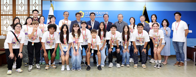 [인천 세계타임즈=심하린 기자] 인천광역시의회(의장:이봉락)는 한국에 방문중인 Korea & Hawaii History Club (KHHC) 학생 등 25명을 6월11일 의회에 초청하여 상호간 교류의 시간을 가졌다.