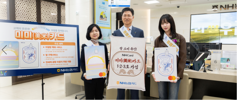 한편, 미미카드 출시를 기념해 NH농협은행 강태영 은행장, NH농협카드 이민경 사장, 미미카드 모델 지예은이 함께 NH농협은행 본사(서울시 중구)에서 카드 발급행사 및 임직원 대상 아침밥 증정행사를 실시했다. 특히 산불피해지역인 안동쌀로 지은 아침밥 증정행사가 큰 호응을 얻었다는 후문이다.