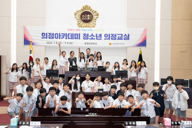 이날 의정아카데미를 진행한 동명초등학교는 모의의회 의정 체험, 5분 자유발언, 의회의 역할과 기능 등 다양한 체험 프로그램을 진행했다.