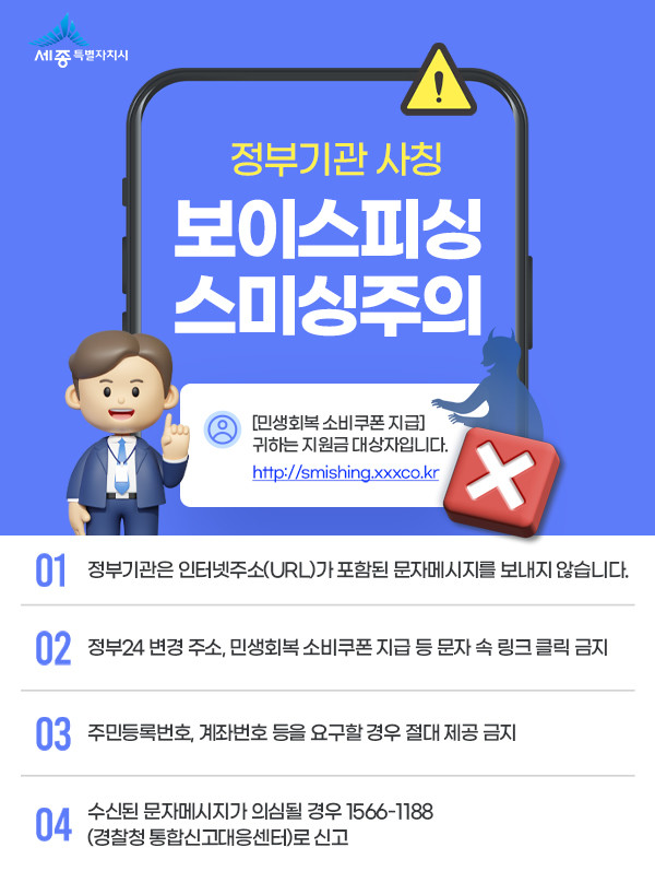 시는 정부가 시스템 장애 등 재난상황 알림 안내문자 발송 시 인터넷주소(URL)가 포함된 문자메시지를 발송하지 않는다고 강조했다.