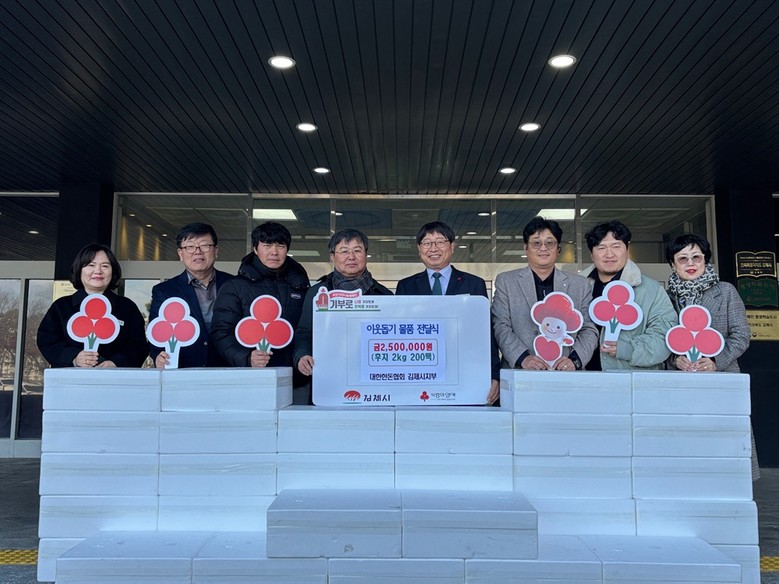 정성주 김제 시장은 “어려운 경제 상황에서도 매년 어려운 이웃을 위해 따뜻한 나눔을 실천해 주고 계신 대한한 돈 협회 김제지부에 깊은 감사를 드리며, 기탁된 물품은 따뜻한 마음이 잘 전달될 수 있도록 소중히 전달하겠다.”고 전했다.