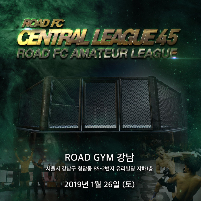 [세계타임즈 김인수기자] 제45회 ROAD FC 센트럴리그가 서울시 강남구 청담동에 위치한 ROAD GYM 강남에서 오는 1월 26일 개최된다. ROAD FC(로드FC) 아마추어 리그인 센트럴리그는 프로 진출을 위한 등용문으로 자리 잡았고, 어느덧 45회째를 맞이했다.