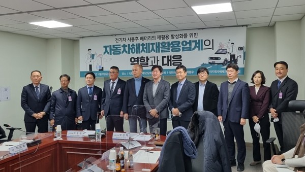 전기차 배터리 재활용 활성화를 위한 자동차해체재활용업계의 역할과 대응을 주제로 한 국회 토론회가 9일 국회회관 제3 간담회의실에서 열렸다.[한국자동차해체재활용업협회 제공]