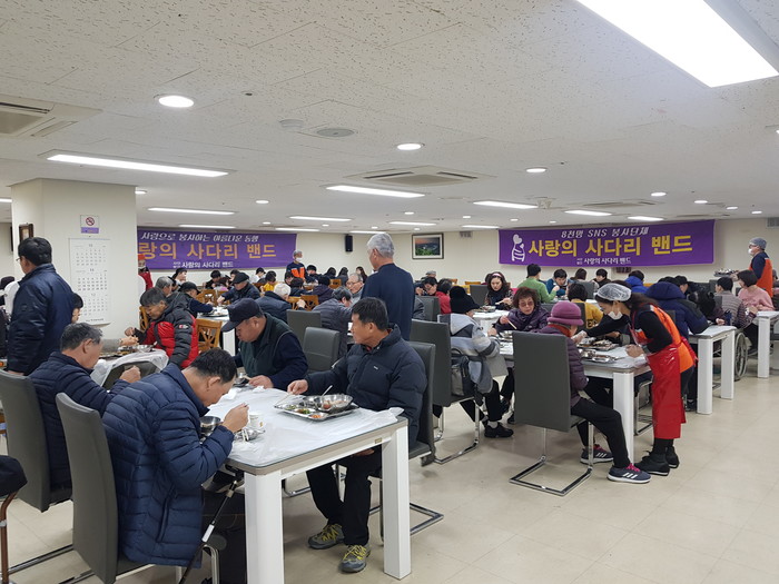 [대전=세계타임즈 이장성 기자] 대전시 SNS 봉사단체 사랑의 사다리 밴드(리더 이정제)는 28일 오전11시, 유성구장애인복지관(관장 김영근)에서 삼계탕 300그릇 봉사로 우리사회의 따뜻한 사랑을 전달하였다.