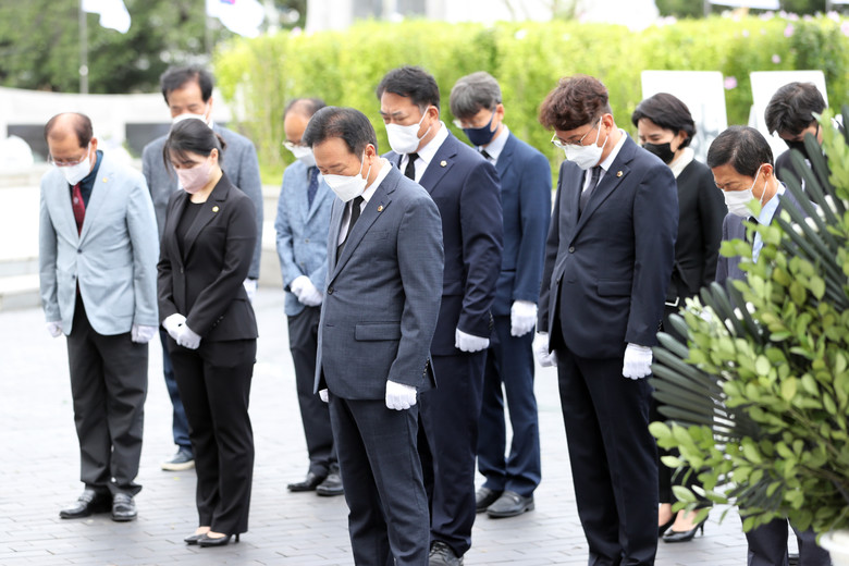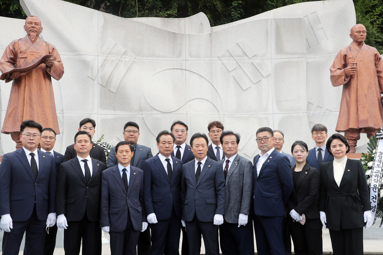 이날 참배에는 황영호 의장을 비롯한 노금식 행정문화위원장, 이동우 건설환경소방위원장, 김현문 교육위원장과 안지윤‧최정훈‧김성대‧이옥규‧이정범‧박재주‧이욱희 의원, 사무처 간부 직원이 참석했다.