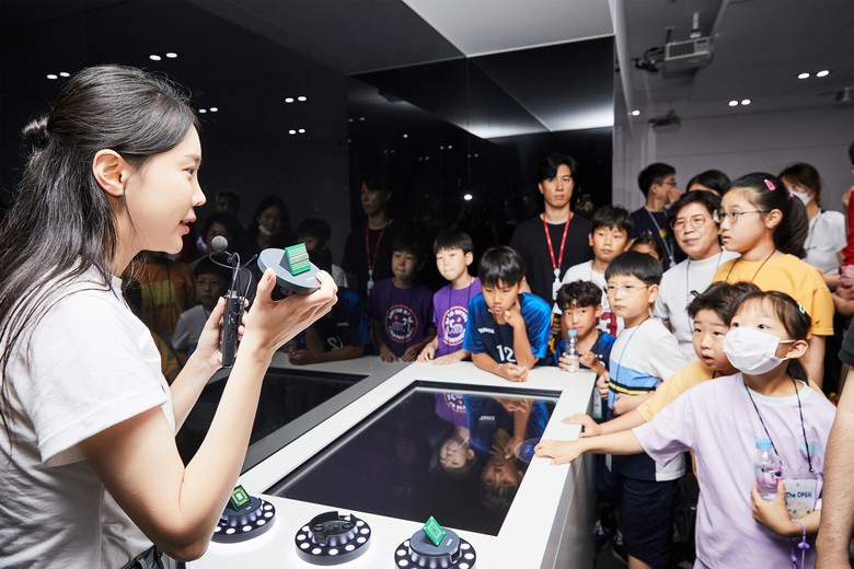 | ▲반도체에 대해 설명을 듣고 있는 SK하이닉스 구성원과 가족들 모습. |