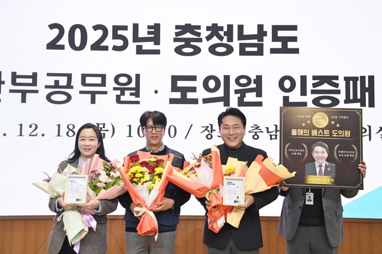 안종혁 위원장은 수상 소감을 통해 “공직자들이 직접 주신 상이라 어떤 상보다도 뜻깊고 영광스럽다”며, “앞으로도 형식에 치우치지 않고, 낮은 자세로 도민의 삶을 살피며 충남 경제 발전을 위해 헌신하겠다”고 밝혔다.