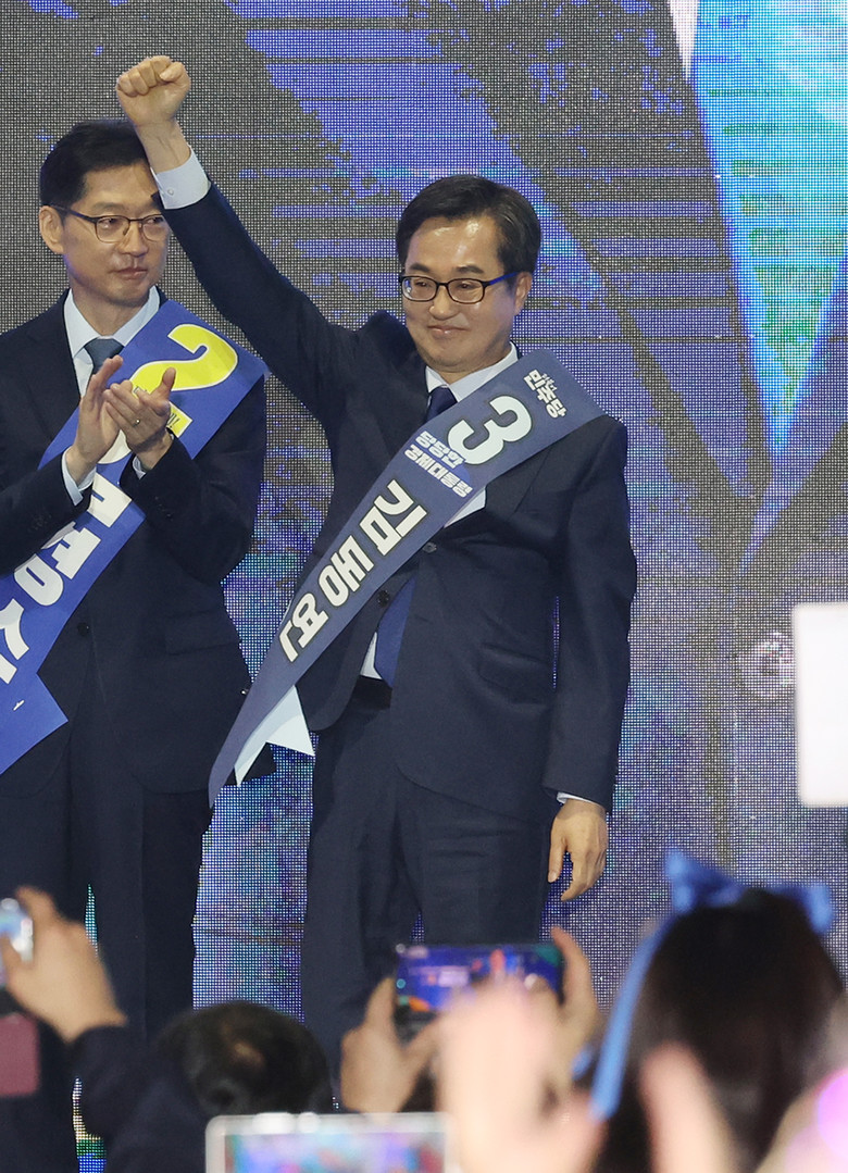 [세계타임즈 = 심귀영 기자] 더불어민주당 김동연 대선 경선 후보가 20일 울산시 울주군 울산전시컨벤션센터에서 열린 '제21대 대통령선거 후보자 선출을 위한 영남권 합동연설회'에서 인사하고 있다. 2025.4.20