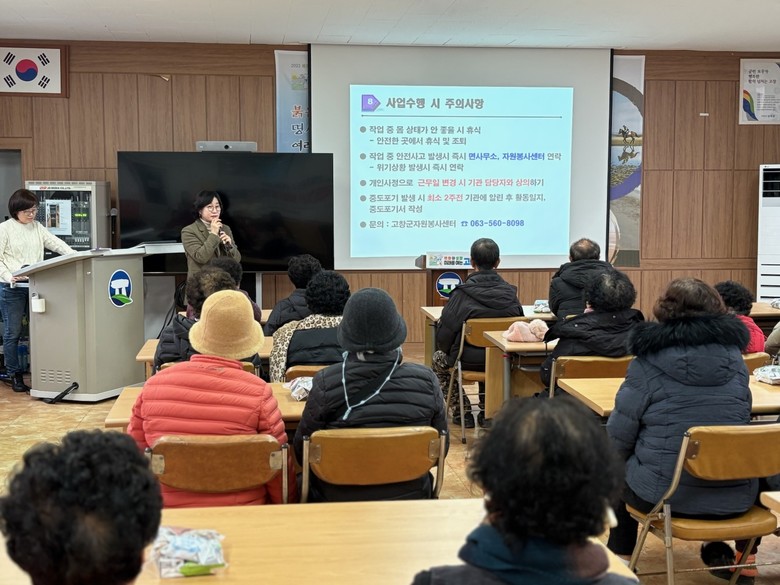 참여 어르신 25명이 함께했으며, 사업 설명회와 안전교육으로 진행되었다. 또 어르신들이 사업의 취지와 업무 내용, 안전 수칙 등을 숙지할 수 있도록 안내했다.