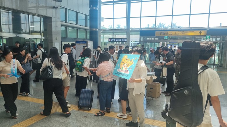 경남도는 이 기회를 활용해 역대합실과 승강장 인근에서 관광객의 눈길을 사로잡는 현장형 홍보 활동을 펼쳤다.