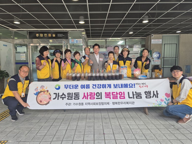[서구 세계타임즈=이채봉 기자] 대전 서구(구청장 서철모) 가수원동 지역사회보장협의체는 말복을 맞아 ‘주민과 함께하는 복달임 행사 및 복지 사각지대 발굴 캠페인’을 이달 12일 개최했다고 밝혔다.