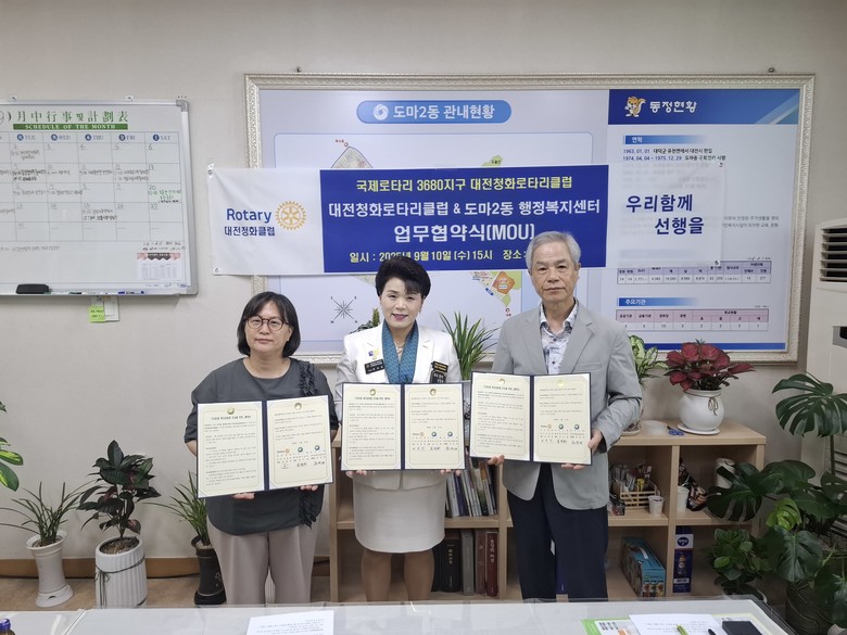 천경래 도마2동 지역사회보장협의체 위원장은 “이번 협약을 통해 따뜻한 마음이 더 많은 복지위기 가구에 닿을 수 있을 것”이라며 “앞으로도 대전청화로타리클럽과 함께 어려운 이웃을 위한 든든한 버팀목이 되겠다”고 전했다.
