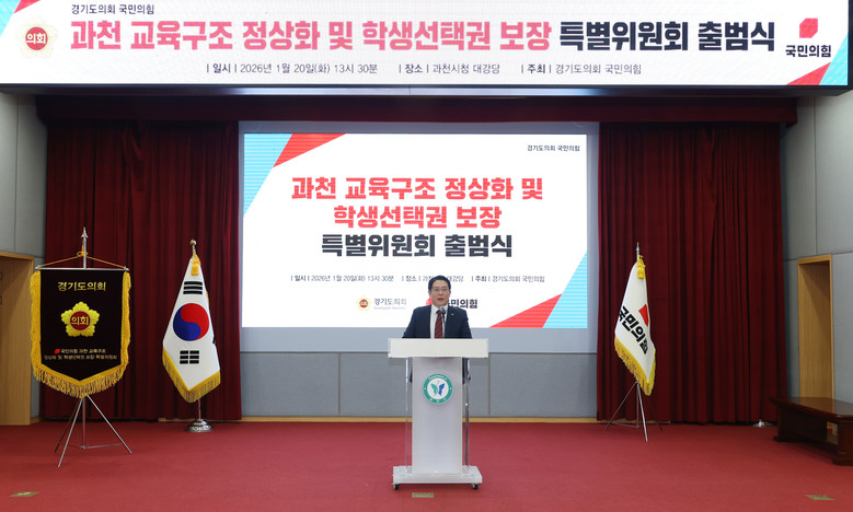 [경기도 세계타임즈=송민수 기자] 경기도의회 국민의힘은 20일 ‘과천 교육구조 정상화 및 학생선택권 보장 특별위원회’를 출범하고 특별위원장에 김현석(과천) 의원을 임명했다.
