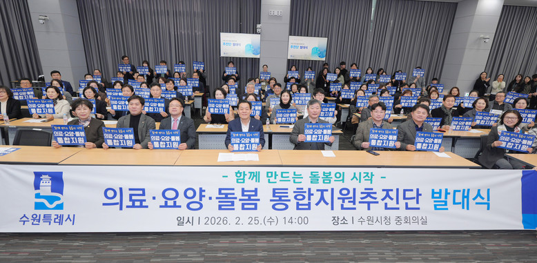 [수원시 세계타임즈=송민수 기자] 수원특례시의회(의장 이재식)는 2월 25일(수), 시청 중회의실에서 열린 ‘의료·요양·돌봄 통합지원추진단 발대식’에 참석해 수원형 통합돌봄 체계의 본격적인 출범을 축하하고, 성공적인 운영을 응원했다.