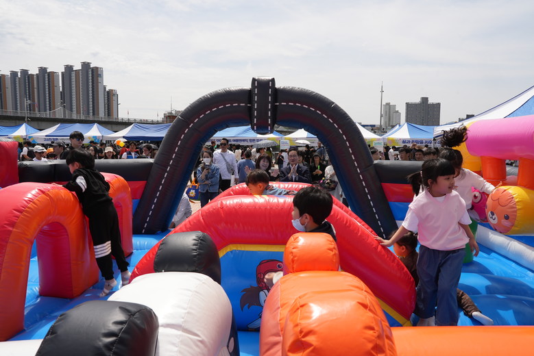 평소 쉽게 접할 수 없는 소방경찰 체험부터 목공예, 전통놀이 체험까지 다양한 부스에는 어린이들의 발길이 끊이지 않았다. 빵과 슬러시를 무료로 제공하는 먹거리 부스와 압화 거울 만들기, 키링 만들기 등 개성이 넘치는 만들기 부스도 큰 호응을 얻으며 어린이들의 얼굴에 연신 웃음꽃을 피웠다. 특히 무대 중앙에 마련된 신나는 에어바운스와 그림 그리기 부스는 어린이들에게 뜨거운 인기를 끌었다.