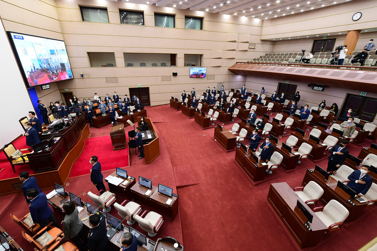 김하용 의장은 개회사를 통해 “큰 희망과 각오를 다지고 출범했던 11대 도의회가 어느덧 임기의 끝자락에 와 있다는 사실에 만감이 교차한다.”며, “그동안 제11대 도의회가 우리지역을 위해 의정활동을 펼치고, 제가 의장의 직무를 성실히 수행할 수 있도록 많은 협조와 응원을 보내주신 동료의원 여러분과 공직자 여러분, 그리고 언론인 여러분 모두와 도민 여러분께 깊은 감사의 말씀을 드립니다.”고 말했다.