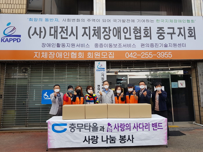 충무타올 김상호 이사는 “코로나19로 힘든시기에 중구지체장애인분들께서 힘을 내시길 바란다.”고 말했다.