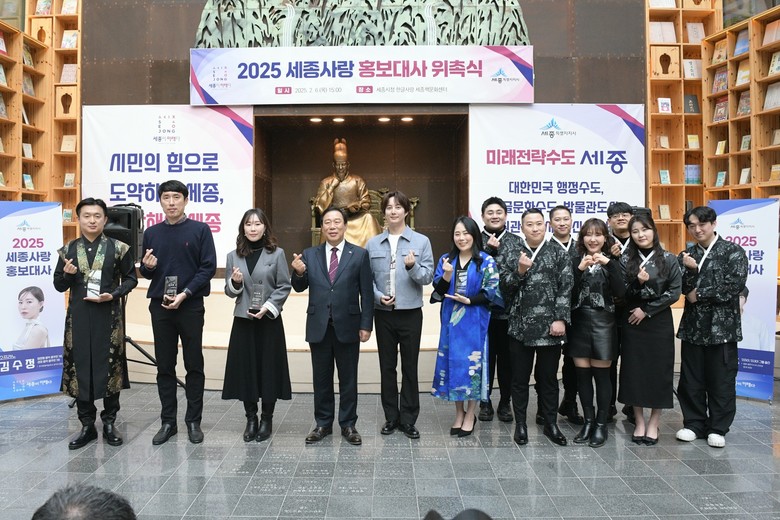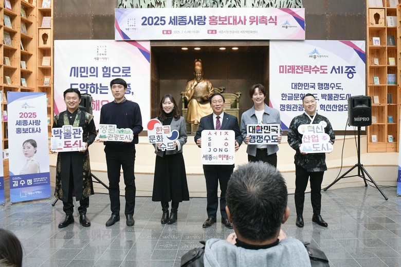 시는 6일 오후 3시 시청 4층 한글사랑 세종책문화센터에서 최민호 시장과 홍보대사 등이 참여한 가운데 ‘2025년 세종시 홍보대사 위촉식’을 열었다.
