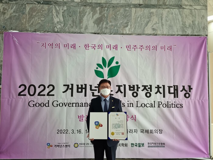한편, ‘2022 거버넌스지방정치대상’은 거버넌스센터가 주최, 거버넌스지방정치대상공모대회 조직위원회가 주관하고 한국지방자치학회, 한국일보 등의 후원으로 분야별로 성과가 우수한 지방자치단체장과 지방의원을 선정해 시상하고 있다.