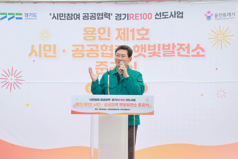 이상일 시장은 처인구 백암면 근삼리에서 열린 햇빛발전소 준공식에 참석해 탄소중립과 신재생에너지의 필요성, 시민과 함께 만드는 친환경 도시 조성을 강조했다.